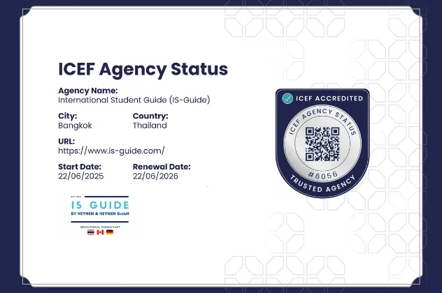 ที่ IS Guide เราใส่ใจดูแลนักเรียนทุกคนเสมือนเป็นคนในครอบครัว ทีมงานผู้เชี่ยวชาญของเราพร้อมให้คำปรึกษาและอยู่เคียงข้างในทุกขั้นตอน ตั้งแต่การเลือกสถาบันที่เหมาะสม ไปจนถึงการเตรียมความพร้อมใช้ชีวิตในต่างประเทศ เราเชื่อว่าความจริงใจ ความรู้ และประสบการณ์ของเราจะช่วยให้นักเรียนก้าวสู่ความสำเร็จได้อย่างมั่นใจ และ พร้อมสำหรับการเริ่มต้นชีวิตการศึกษาใหม่ในต่างประเทศ