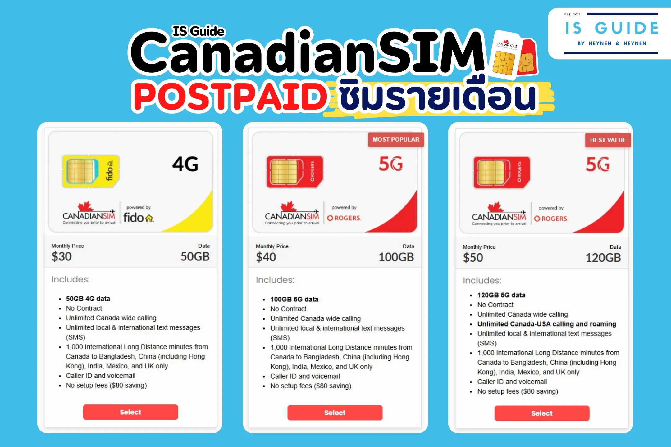 CanadianSIM by IS Guide -ซิมรายเดือน (Postpaid) ในแคนาดา📱🇨🇦