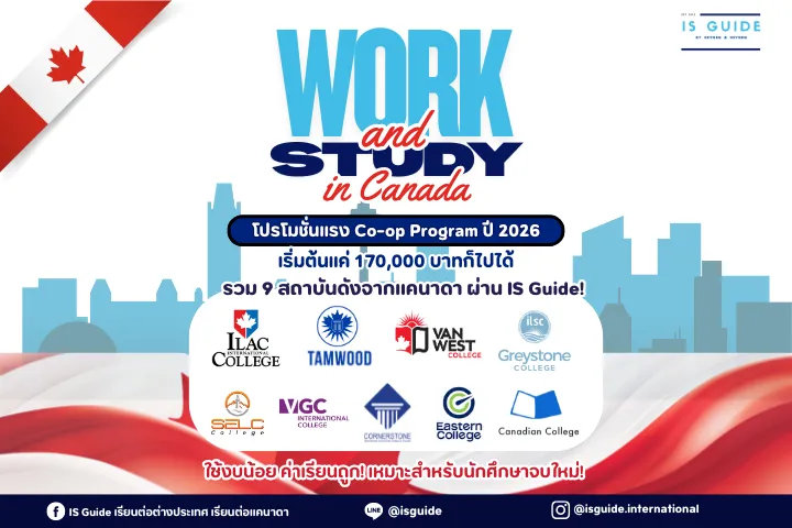 เรียนไปด้วย ทำงานไปด้วย เก็บเงิน เริ่มต้นเพียง 170,000 บาทเท่านั้น! สำหรับนนักเรียนที่อยากเปิดประสบการณ์เรียนและทำงานต่างประเทศไปพร้อมกัน โปรแกรม Co-op (Work & Study Program) ในประเทศแคนาดาถือเป็นอีกทางเลือกที่คุ้มค่า เพราะไม่เพียงได้พัฒนาทักษะทางอาชีพของนักเรียน แต่ยังเปิดโอกาสให้นักเรียนนั้นได้เก็บประสบการณ์ทำงานจริงในบริษัทแคนาดา พร้อมสร้างรายได้ระหว่างเรียนอีกด้วย โปรแกรม Co-0p...